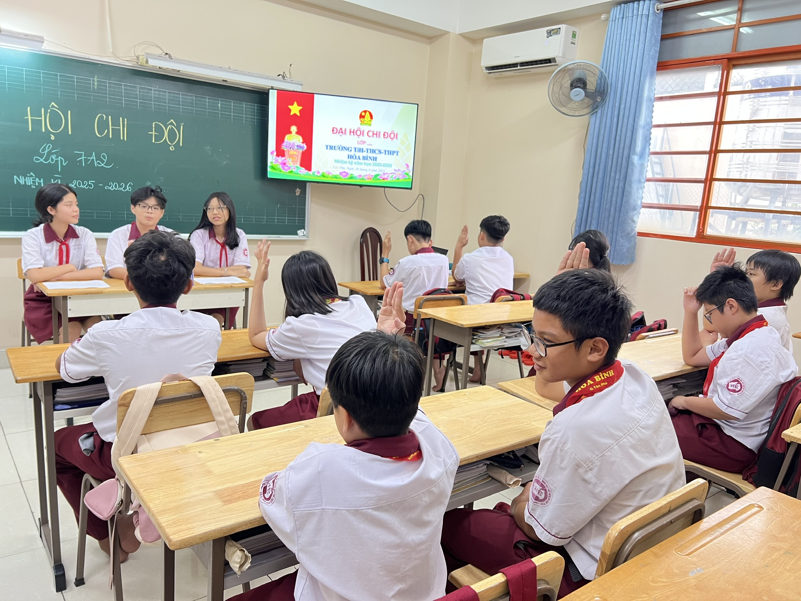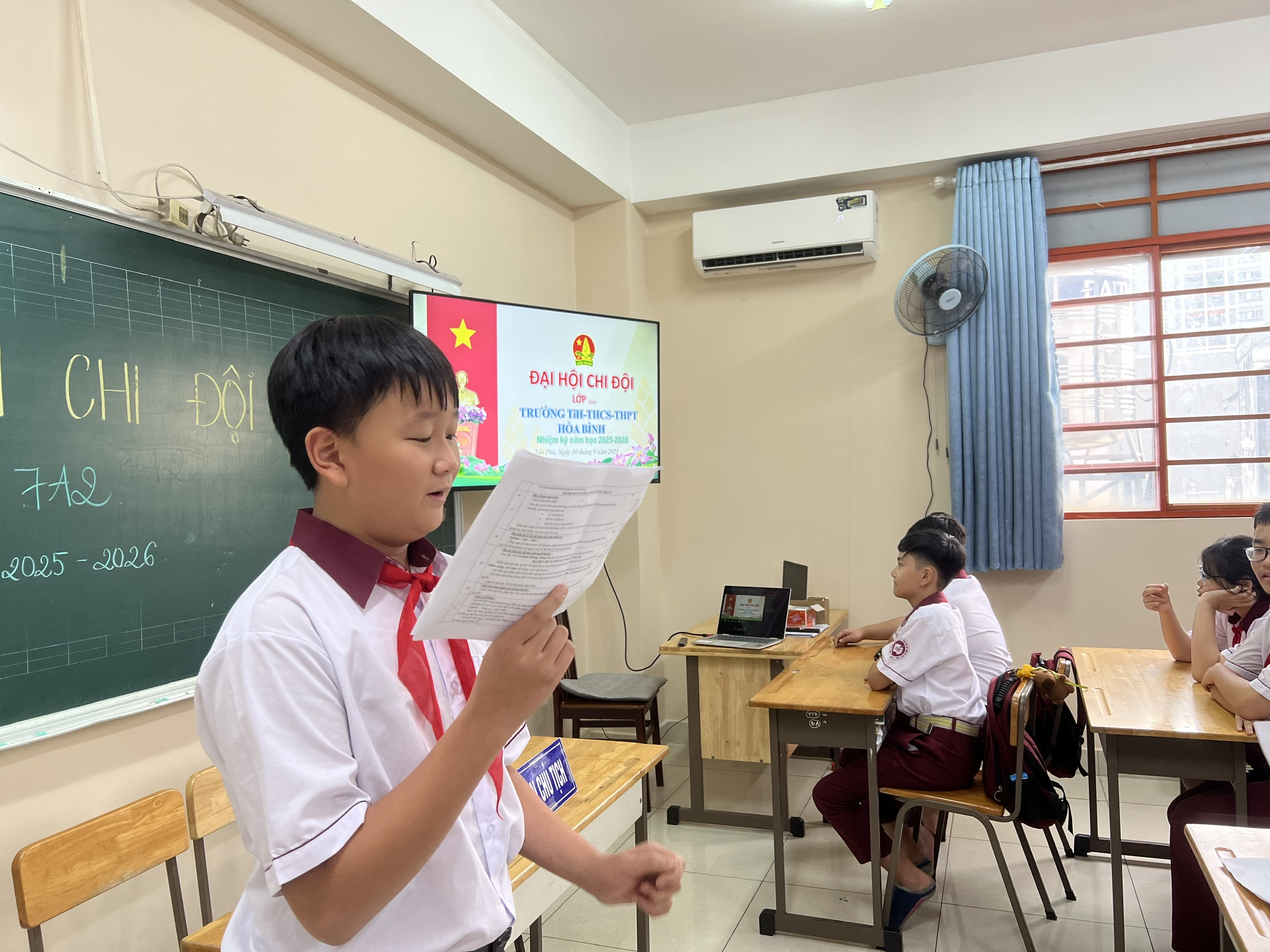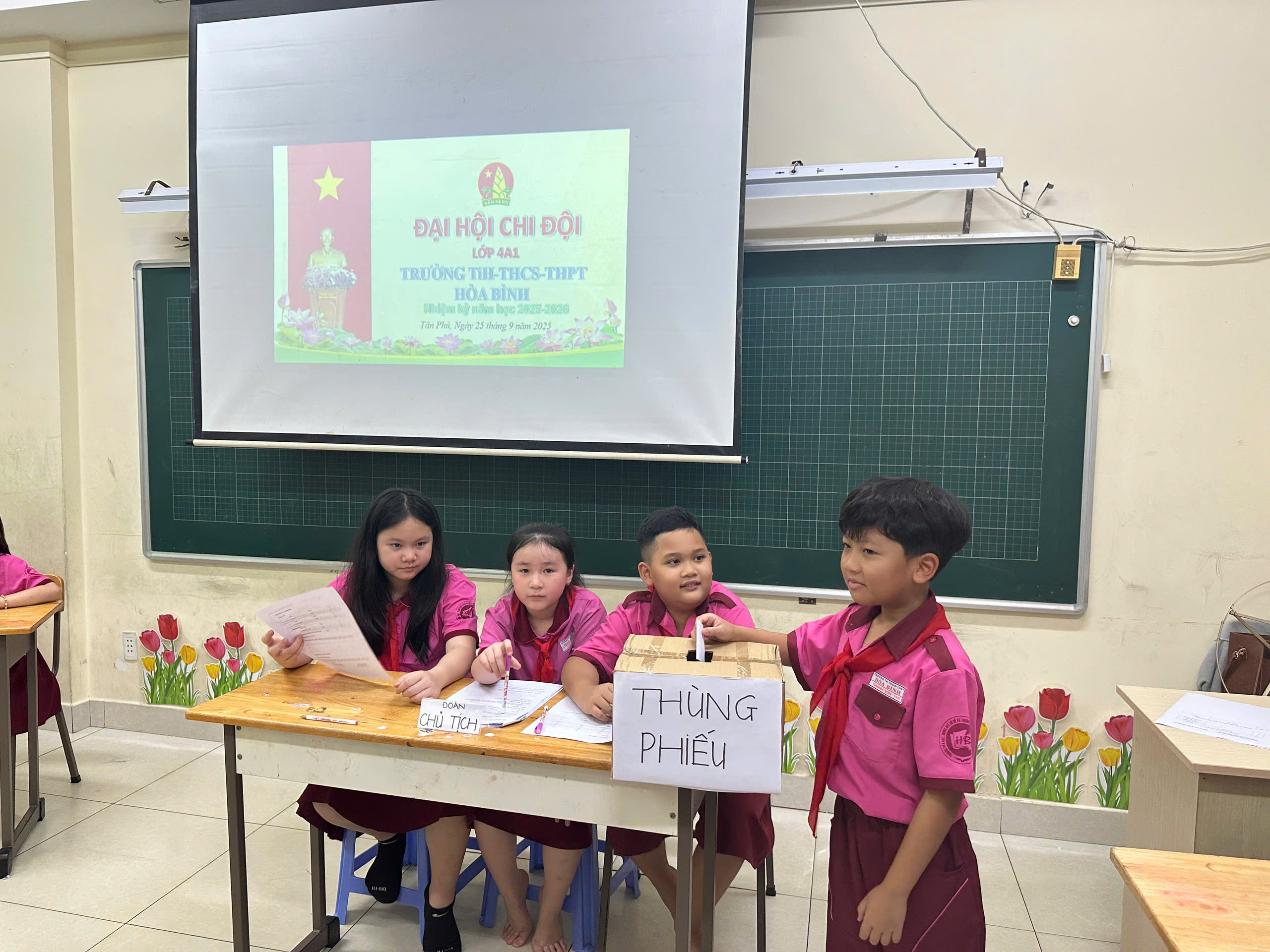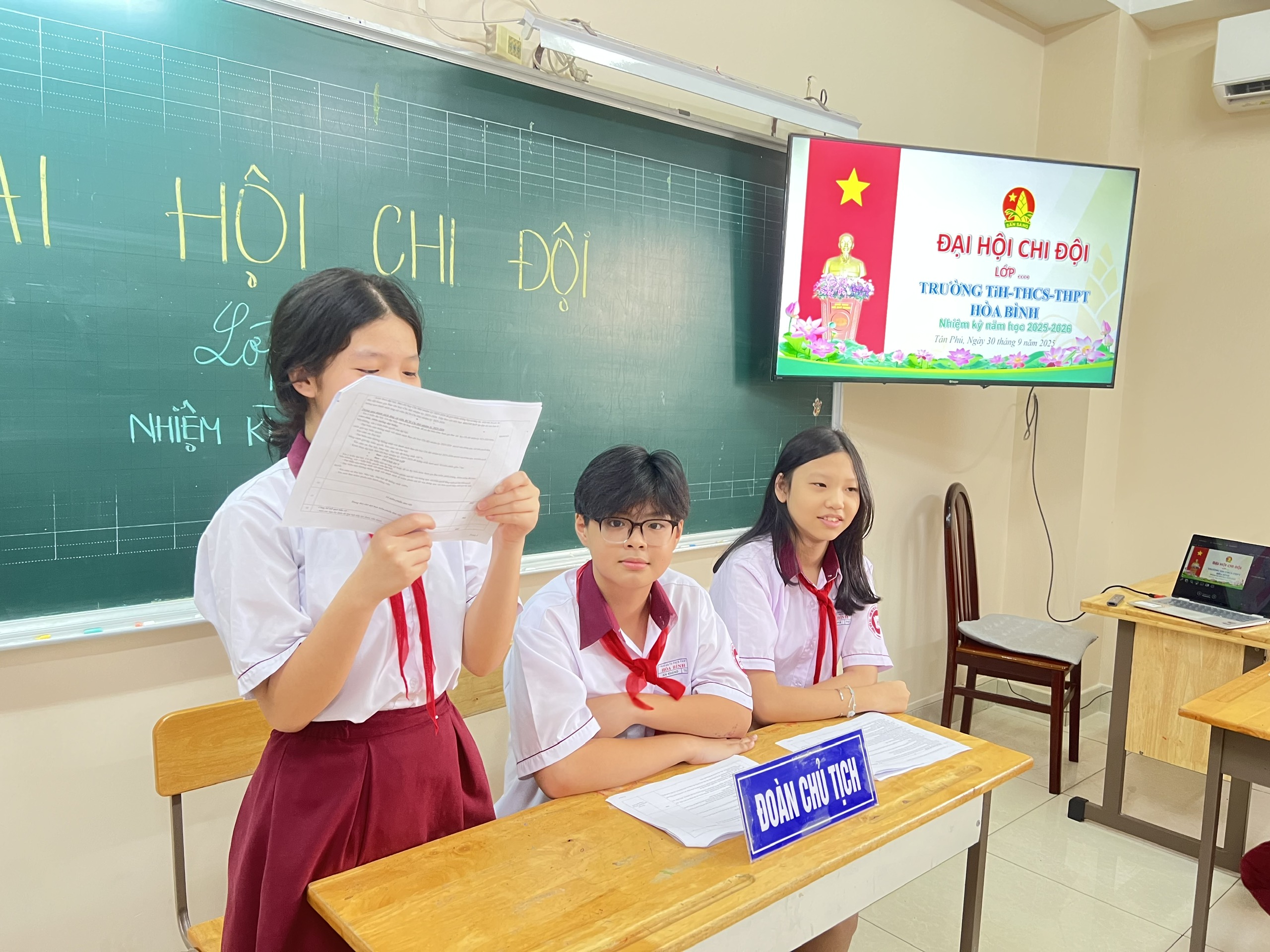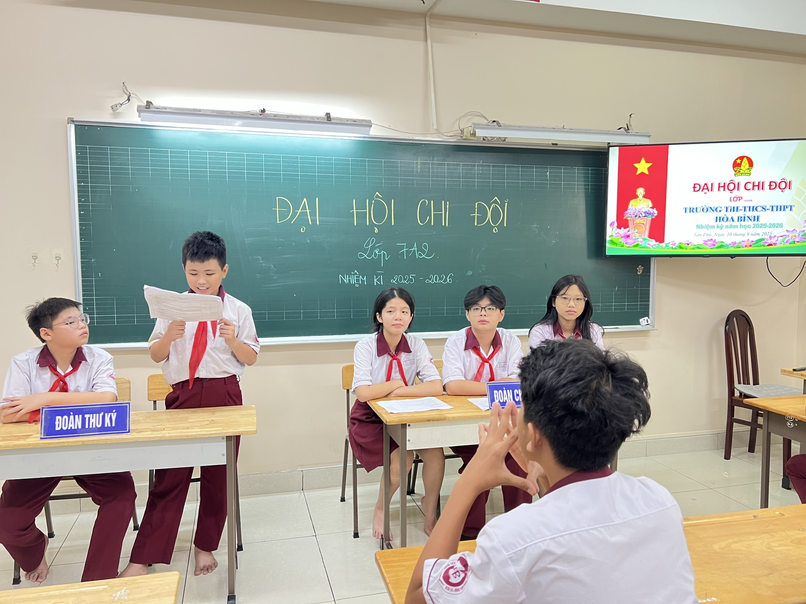 Hòa chung không khí sôi nổi của năm học mới, các Chi đội thuộc Liên đội Hoà Bình đã long trọng tổ chức Đại hội Chi đội 🌟. Đây là dịp để các bạn Đội viên cùng nhau: