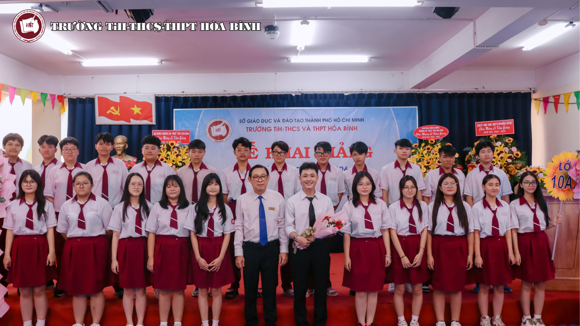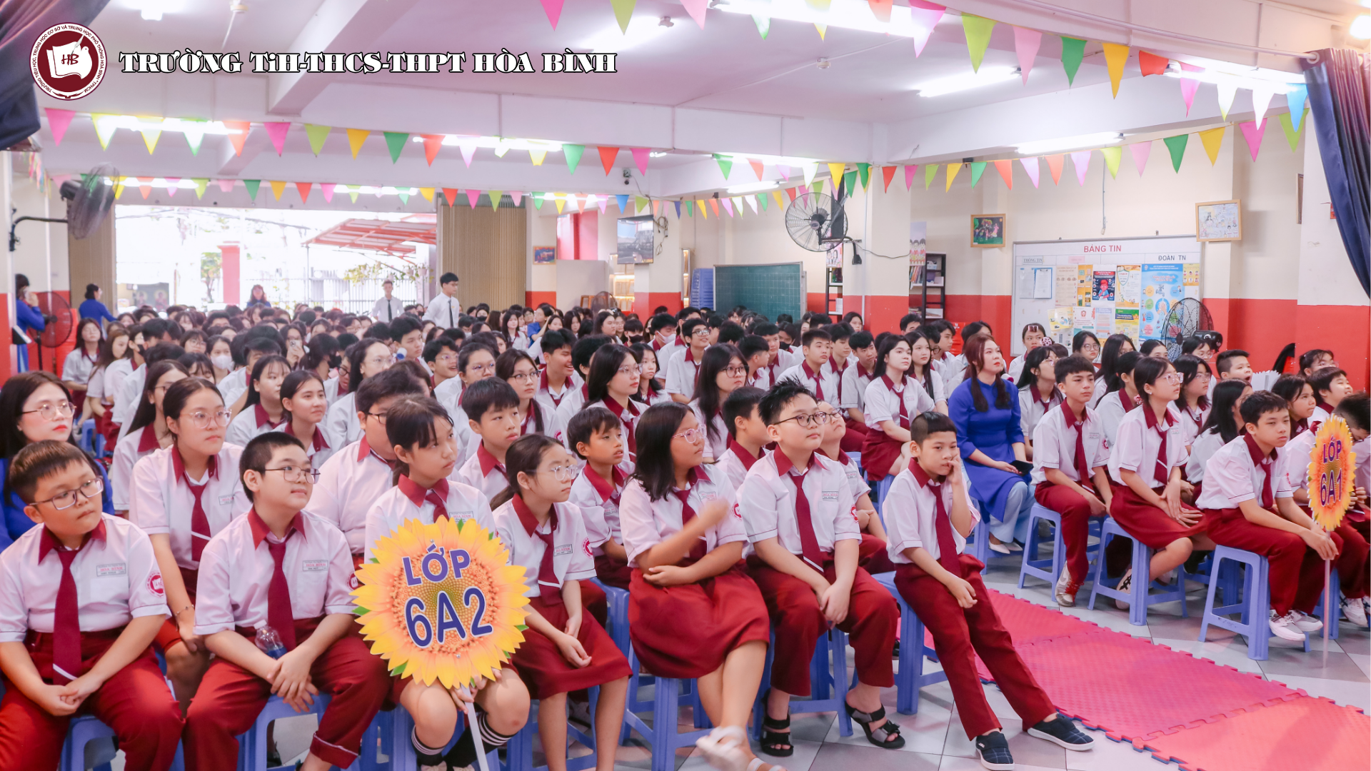 Năm học mới, nhà trường vinh dự chào đón các em học sinh lớp 1, lớp 6 và lớp 10 – những gương mặt hồn nhiên, đầy khát vọng, sẽ cùng viết tiếp hành trình học tập và trưởng thành dưới mái trường Hòa Bình. Những bước chân đầu tiên của các em chính là niềm tự hào, niềm tin yêu mà tập thể nhà trường nâng niu và trân trọng.