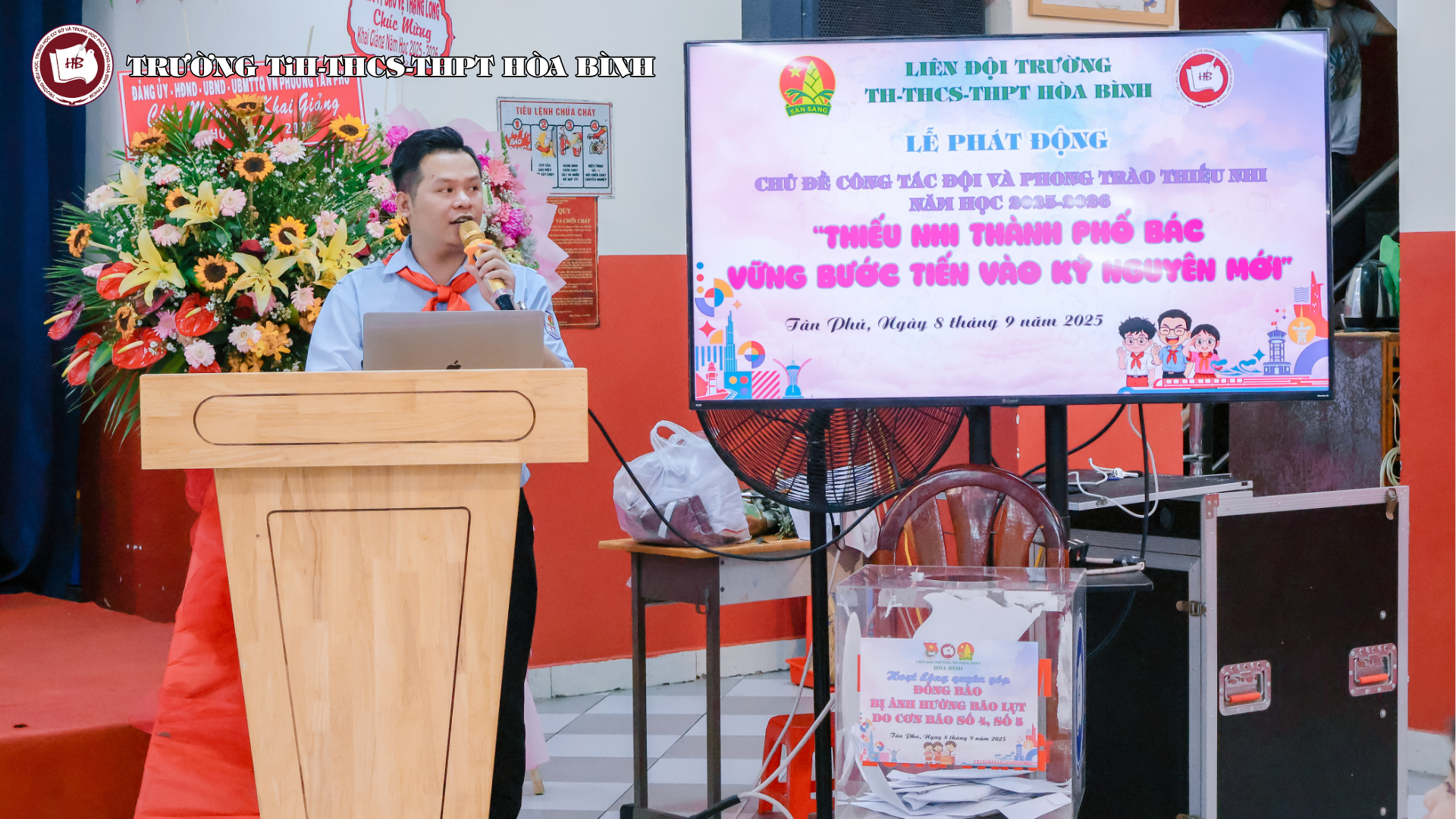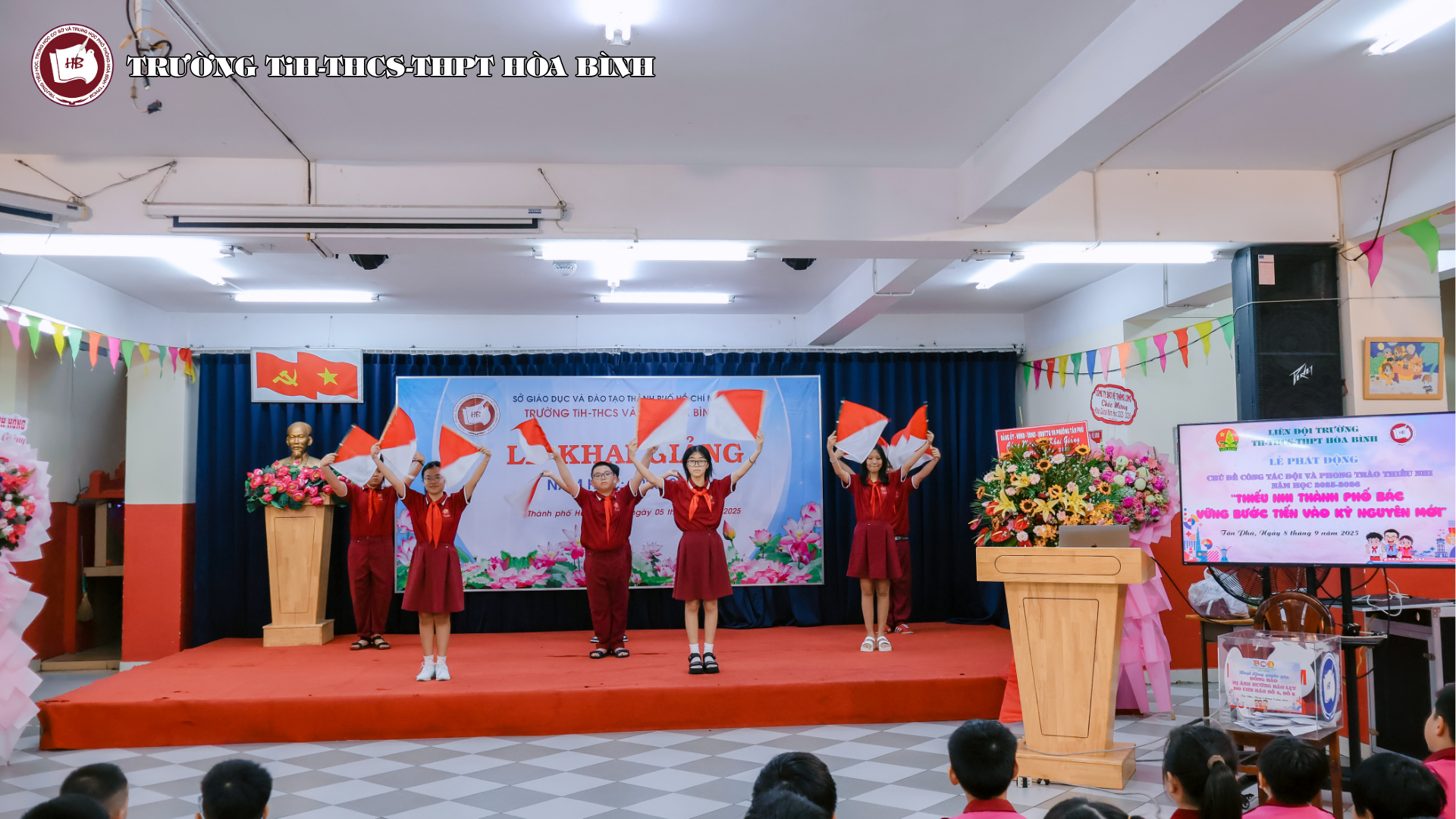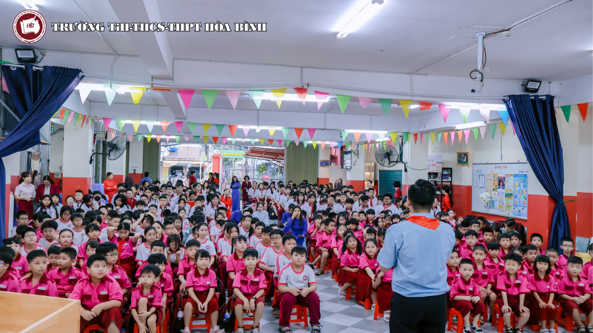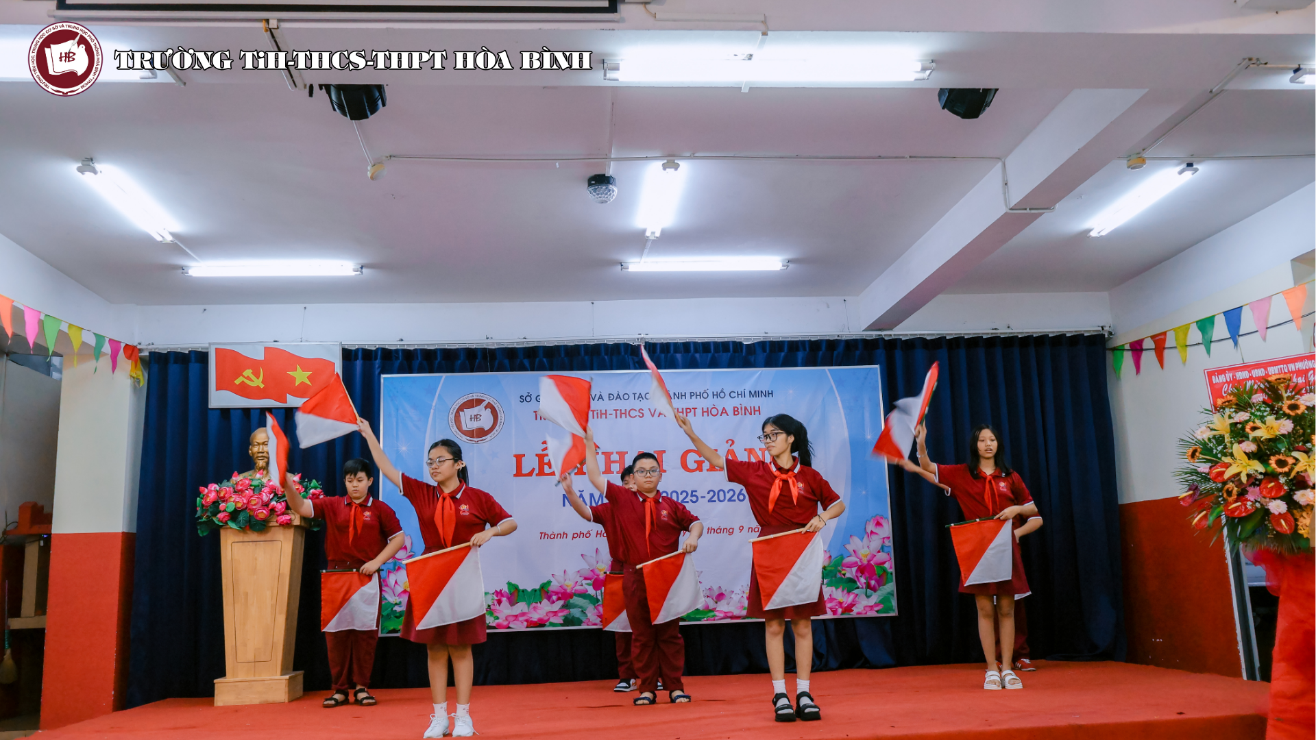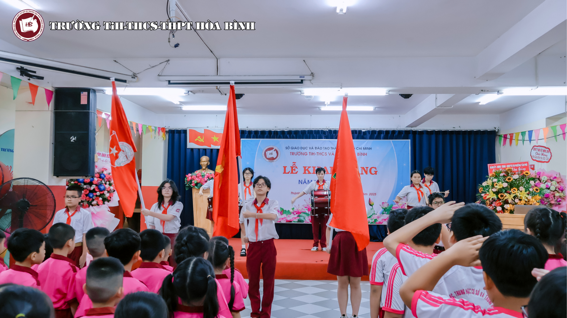 Ngày hôm nay, Liên đội Trường TH–THCS–THPT Hòa Bình đã long trọng tổ chức Lễ phát động chủ đề công tác Đội và phong trào thiếu nhi năm học 2025–2026.
