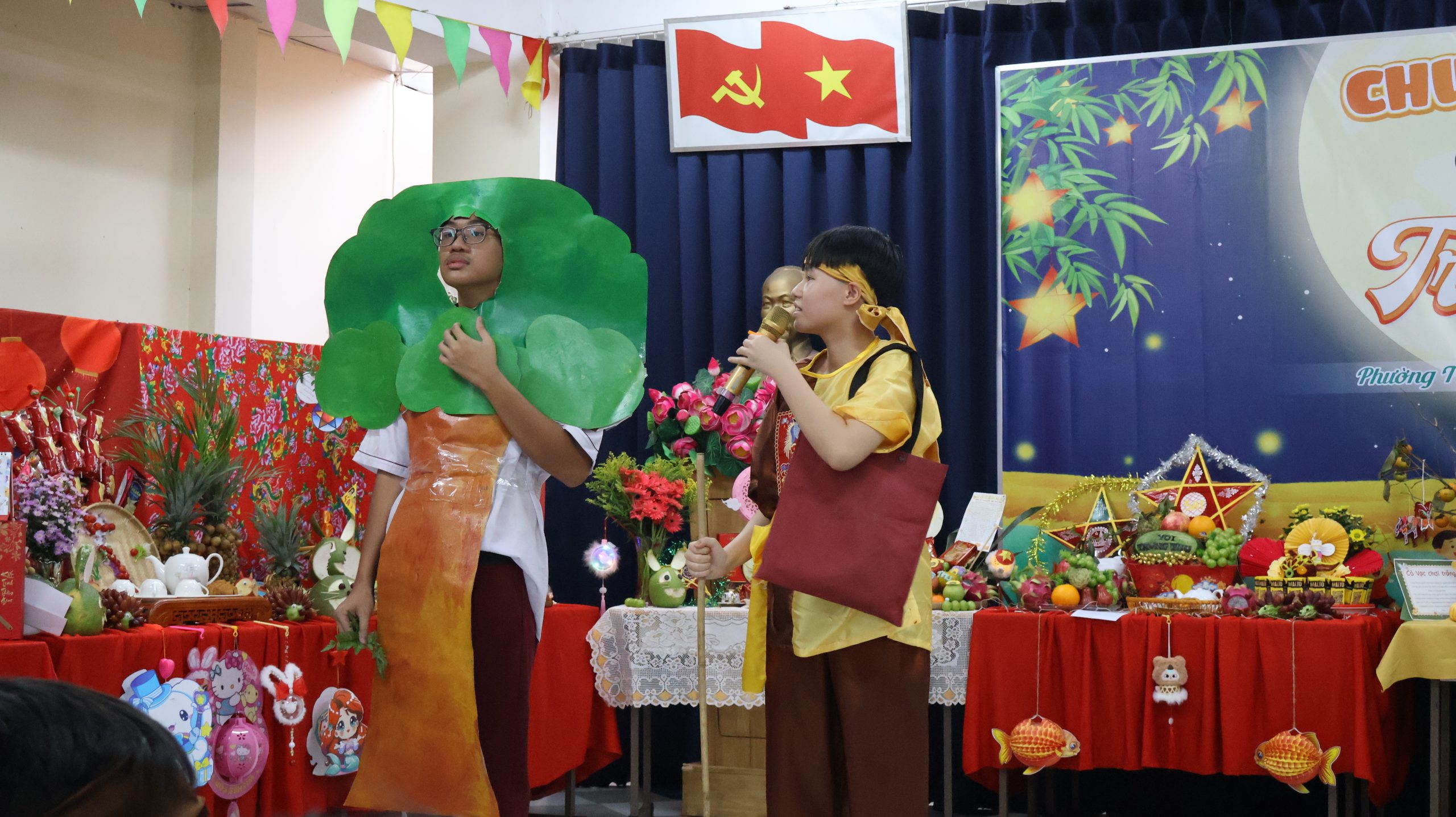Khối 1 – 2 – 3: Các bạn nhỏ thật đáng yêu và sáng tạo trong Hội thi Thời trang Chị Hằng – Chú Cuội, với những bộ trang phục được làm từ vật liệu tái chế, giấy màu, lá cây, ruy băng… vừa ngộ nghĩnh vừa mang thông điệp bảo vệ môi trường – sáng tạo không giới hạn