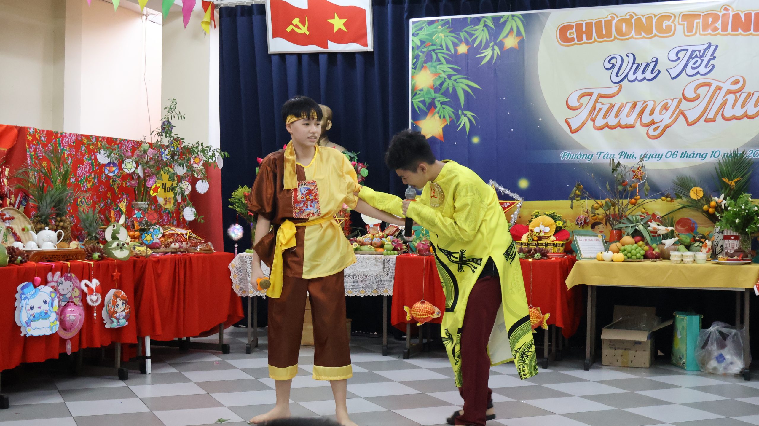 Khối 4 – 5 – 6 – 7 – 8: Cùng hòa mình vào những tiết mục văn nghệ đặc sắc, ca ngợi trăng rằm, quê hương, tình bạn và mái trường thân yêu. Tiếng hát, điệu múa, lời ca đã làm sân trường như bừng sáng dưới ánh trăng Trung thu
